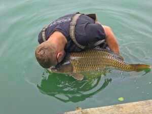 Must-haves: carp care kits and waders. These are big fish that sometimes need time to get themselves straight, so getting in and holding them a while is required.