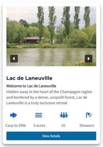 Lac de lion is a 5 acre spring fed lake nestled in a wooded valley with five known 60s to 66.4lb, with plenty of 50s and a good head of 40s and 30s, including mirrors commons koi and grass carp.