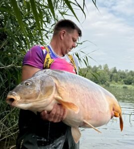 From peg 26, one of the lake’s legendary residents made an appearance: a huge leather carp weighing in at 31.5 kg. Massive congratulations go out to Ivan, who not only landed this incredible fish but also secured his personal best (PB) in the process. At 31.5 kg, this leather is among the very biggest of its kind in Europe right now – a truly special catch!